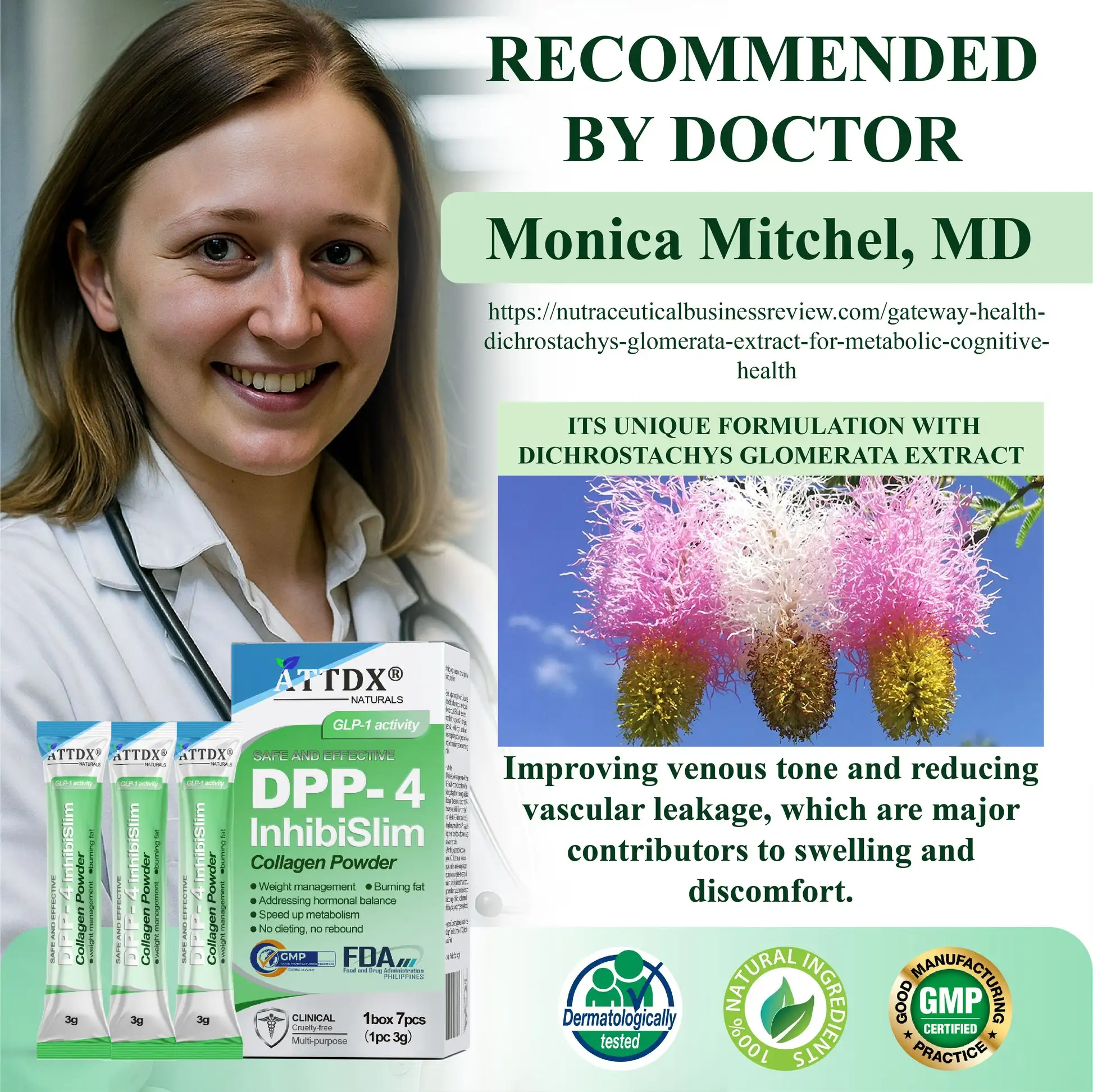 Enhance your daily routine with ATTDX® DPP-4 InhibiSlim Collagen Powder, powered by the potent Dichrostachys glomerata Extract. This unique formula supports body harmony, inner vitality, and weight balance—helping you feel lighter, look refined, and stay energized from the inside out.