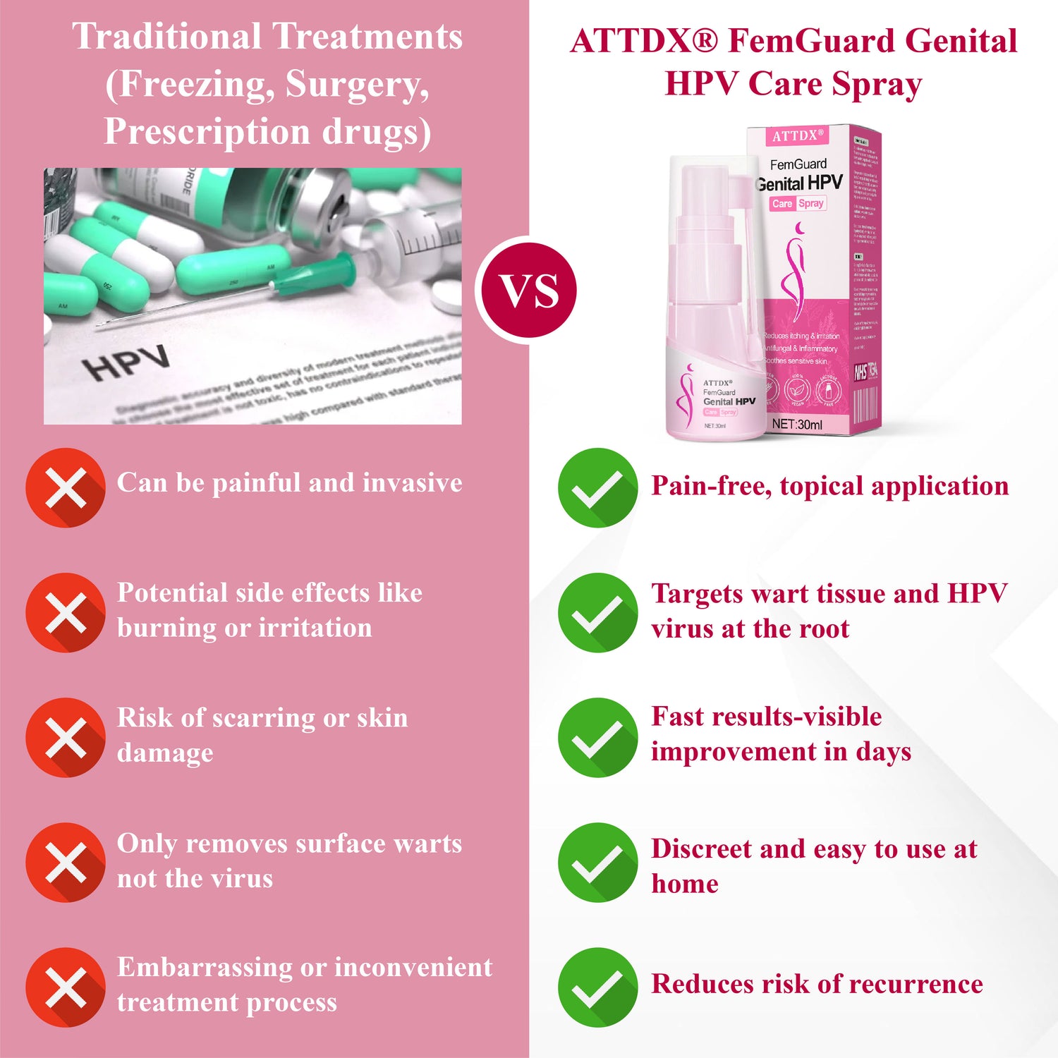 ATTDX® FemGuard Genital HPV Care Spray is specially formulated to support women dealing with genital warts, irritation, and recurring discomfort using nature-powered ingredients. With a gentle yet effective blend of botanical extracts like Phellodendron Bark and Sophora Flavescens Root, it helps soothe sensitive skin while supporting antiviral protection. Choose ATTDX® for daily intimate care that prioritizes your comfort, balance, and confidence.