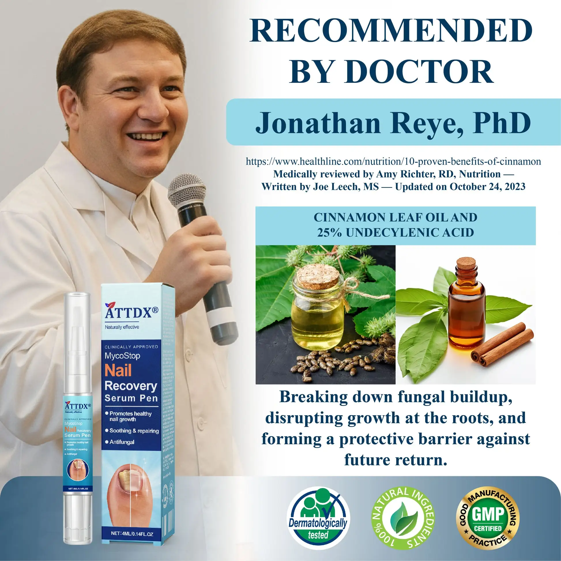 Banish stubborn nail fungus with ATTDX® MycoStop Nail Recovery Serum Pen, powered by natural ingredients like Cinnamon Leaf Oil and 25% Undecylenic Acid. Achieve clean, strong, and healthy nails that you’ll be proud to show off!